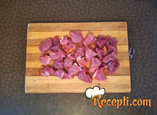 Meso iseći na krupnije komade, posoliti, pobiberiti i ispržiti na ulju na srednjoj vatri. Na ulju pržiti meso dok ne dobiju zlatnu koricu.