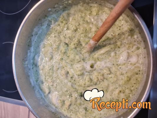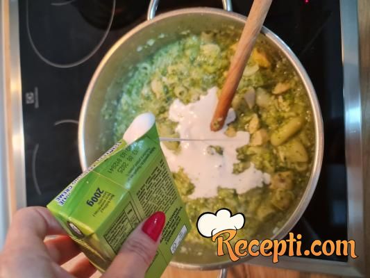Zatim dodajte pavlaku za kuvanje pa ostavite još malo da se kuva. Služite dok je još toplo. Po želji od gore možete posuti rendanom mozzarelom.