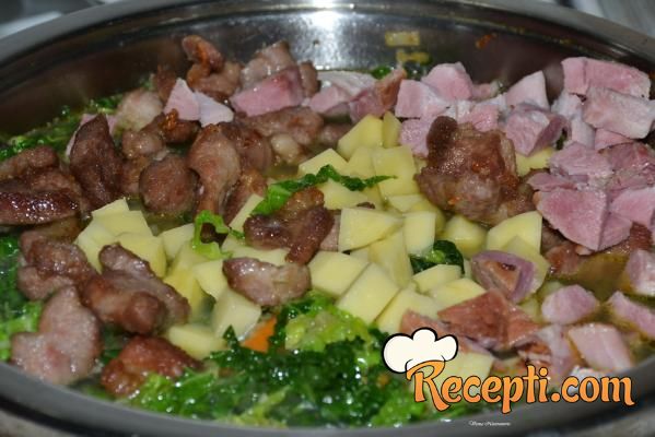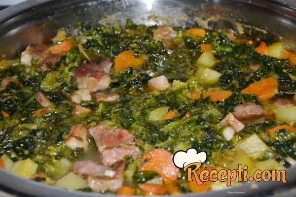 Na internetu sam pogledala recepte za varivo od kelja, naišla na prelepi recept na stranici “Putni kofer” koji mi je bio vodilja za izradu moje varijante variva. Ručak me oduševio i to mene koja od detinjstva nisam mogla smisliti kelj u ishrani. Kelj sam počela pripremati tek kada sam otišla u penziju osim kelja sa krompirom na lešo.