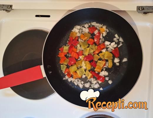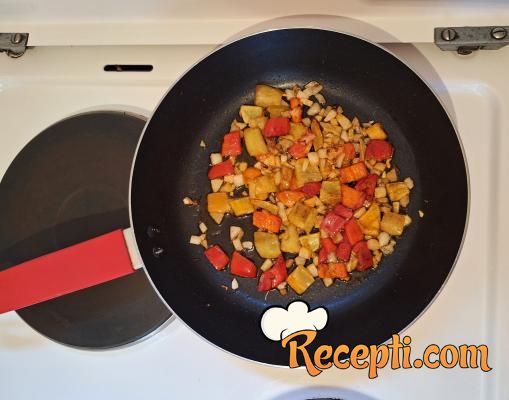 Dodati seckanu paprika i kratko propržiti.