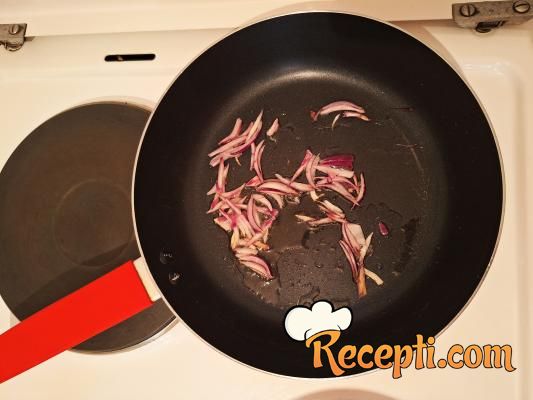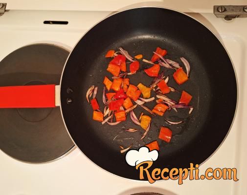 Dodati seckanu pečenu paprika i kratko propržiti.