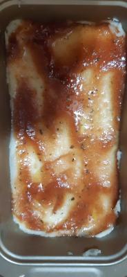 Pomešajte kečap, maslinovo ulje i bosiljak i premažite preko pirea.
