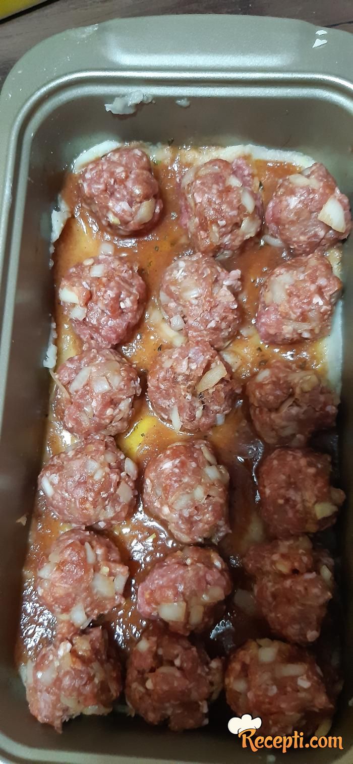 Preko kečapa poređajte napravljene ćuftice.