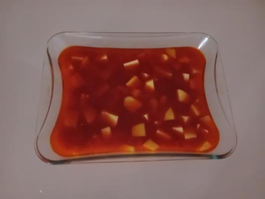 Krompir oljuštiti, oprati i iseći na kockice. Pirinač oprati i procediti. Na zagrejanom ulju propržiti sitno seckan crni luk, dodati seckan beli luk, kratko upržiti te umešati slatku začinsku papriku i izmešati. Zatim dodati krompir, pirinač i začiniti po ukusu (dodati so, biber i suvi biljni začin) te preručiti u vatrostalnu posudu/pekač i preliti toplom vodom da ogrezne. Peći u dobro zagrejanoj rerni na 190 stepeni 45 minuta.