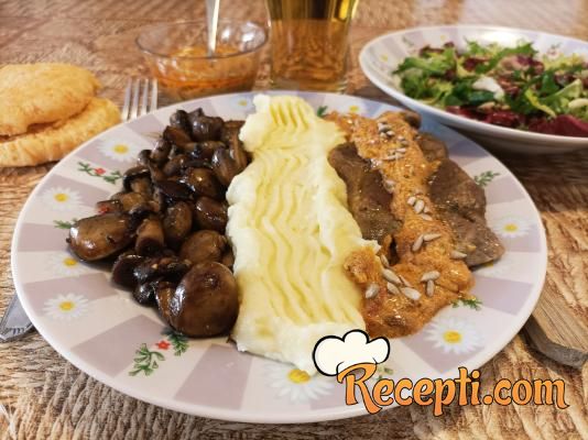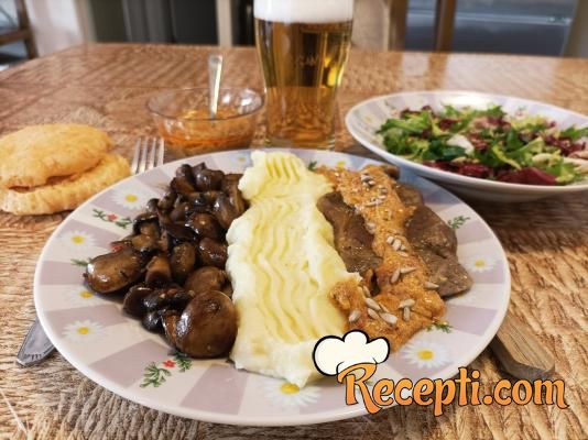 Šampinjoni, prženi na ovaj način, su savršeni kao prilog, meso je izuzetno mekano i sočno, preliveno sa divnim kremastim sosom i uz krompir pire dobićete veoma ukusan ručak.
