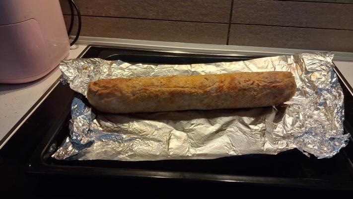 Posle 45 minuta izvaditi iz rerne, razmotati foliju, izvući papir i vratiti još 5 minuta da se lepo zapeče korica.