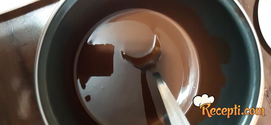 Izlomkanu čokoladu pomešanu sa uljem otopite na nižoj temperaturi i prelijte bombice.