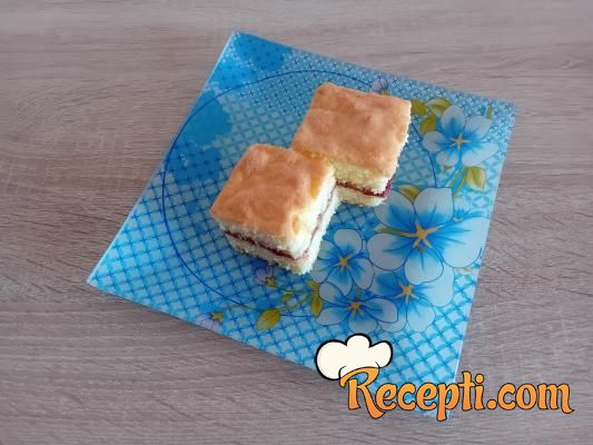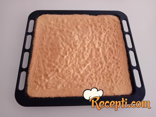 Ovaj kolač je nastao neplanirano. Elem, rešim da napravim Trileće i procenim da je pleh odgovarajućih dimenzija. Ali, kada se kora ispekla, bila je tanka za Trileće, a debela da napravim rolat. Tada sam došla na ideju-odsekla sam ivice kada se kora prohladila, prepolovila je, nafilovala je domaćim džemom od jagoda i eto nama ukusne poslastice. Trileće sam odmah nakon toga napravila (objavljen je recept). Prijatno!