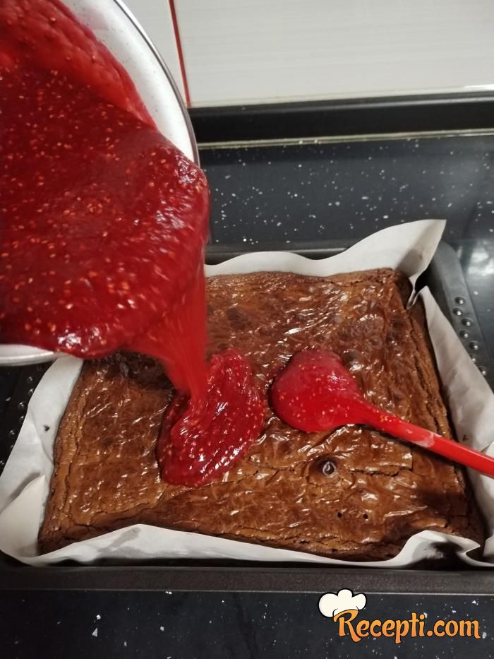 Gotov (vruć) fil odmah sipajte preko brauni kore.