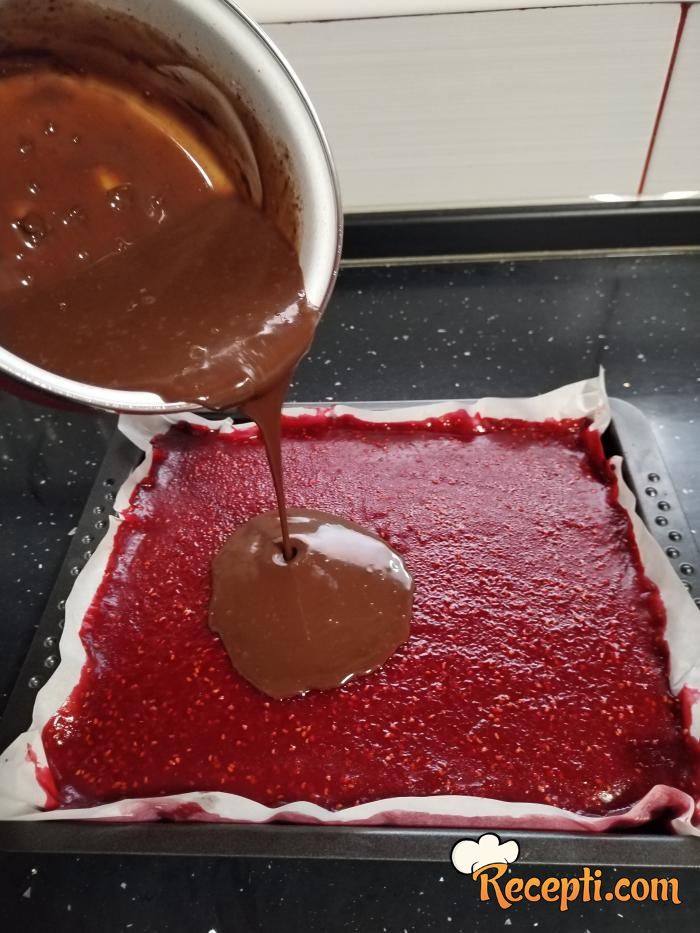 Prelijte preko malina i ostavite da se ohladi i stegne.