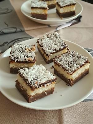 Istopite čokoladu sa kockicom maslaca i malo mleka, pa prelite kolač. Po želji pospite kokosom.