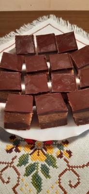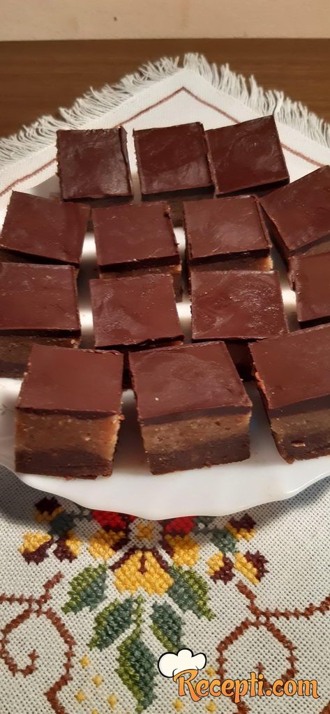 Na dno pleha rasporediti sloj sa čokoladom, pa svetli deo i odozgo glazura. Za glazuru otopite na niskoj temperaturi nalomkanu čokoladu pomešanu sa uljem.