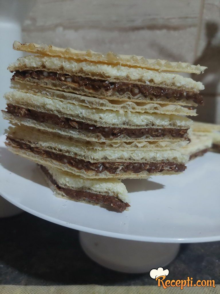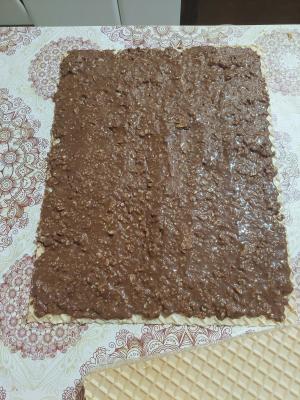 List oblande namazati tamnim kremom. Na njega staviti još jedan list oblande.