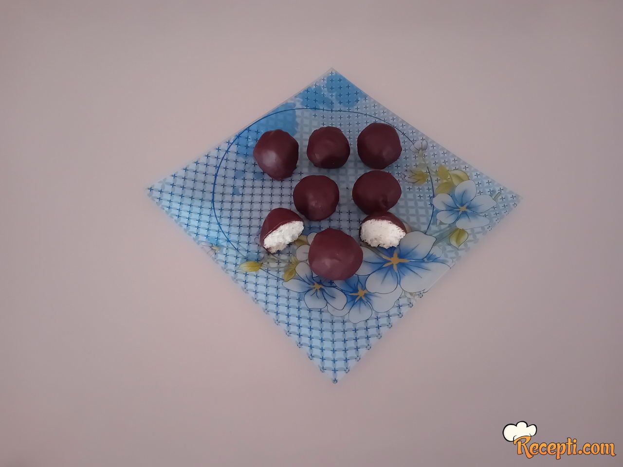 Za glazuru: Čokoladu za kuvanje polomiti na kockice, staviti u šerpu, dodati ulje te otopiti na pari. Na tacnu staviti papir za pečenje. U čokoladnu glazuru valjati kuglice. Ređati preko papira za pečenje i ostaviti u frižider da odstoje dok se čokolada ne stegne. Kuglice složiti na tacnu i poslužiti.