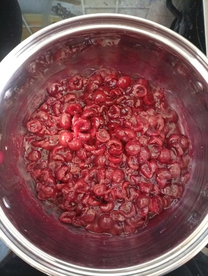 Staviti da se kuvaju. Kada višnje omekšaju dodati gustin razmućen sa malo vode.