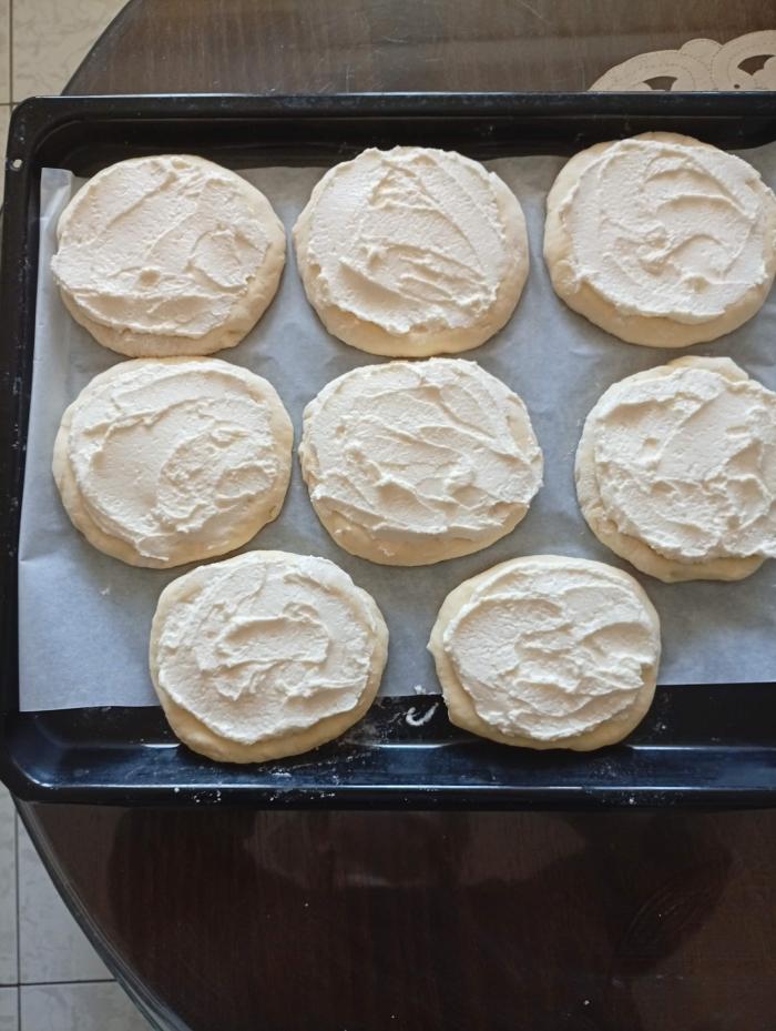 Testo istresti na pobrašnjenu površinu i podeliti ga na 8 loptica. Svaku lopticu rastanjiti i napraviti udubljenje.