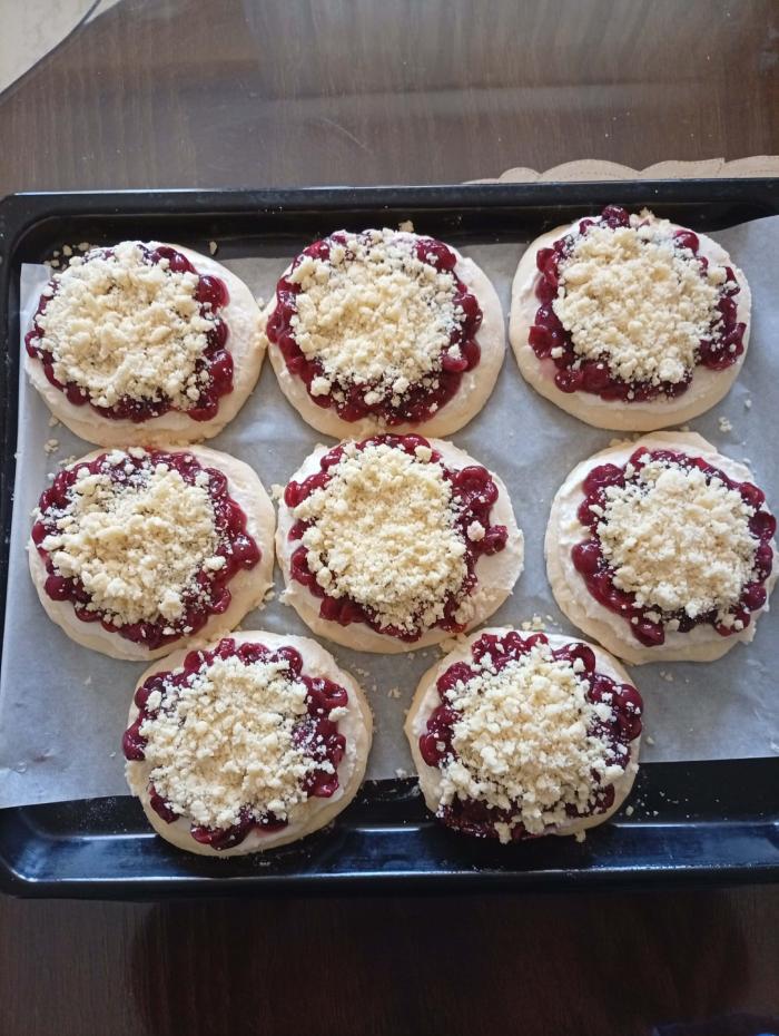 Preko fila od višanja obilno naneti pripremljene mrvice.