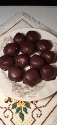 Dok se bombice hlade pripremite glazuru: otopite nalomkanu čokoladu pomešanu sa uljem na umerenoj temperaturi ili na pari. Kratko prohladite pa umačite pripremljene bombice i ređajte opet na pek papir.