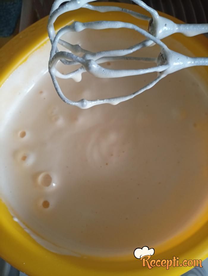 Belanca umutiti u čvrst sneg. Dodati šećer i vanilin šećer pa još malo mutiti.