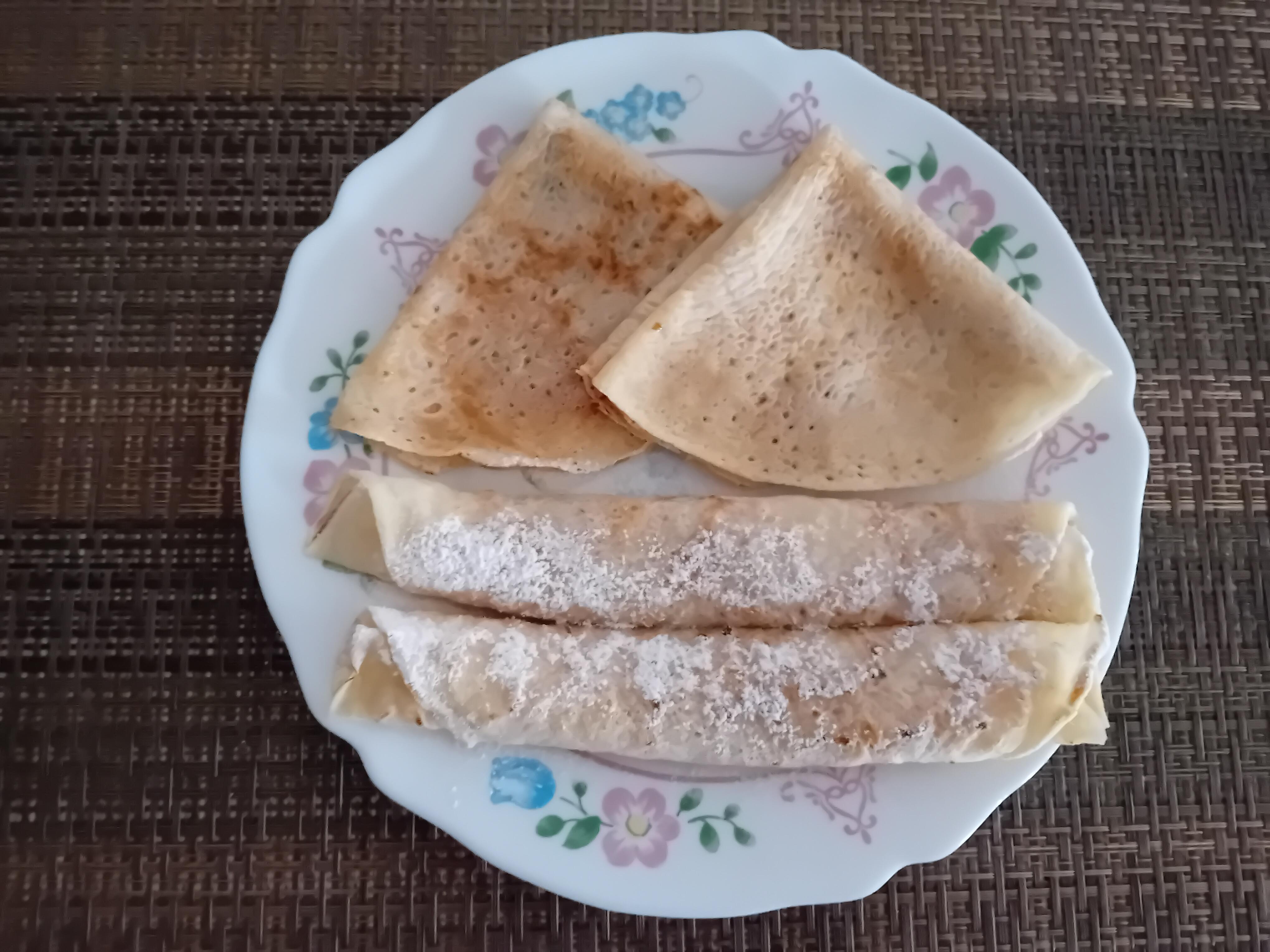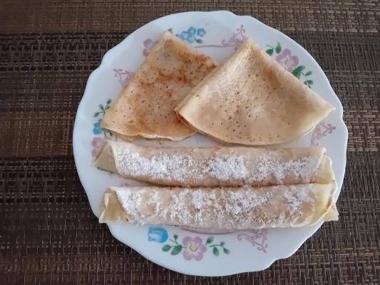 U posudu staviti brašno,dodati prašak za pecivo,so,sodu bikarbonu,vanilin šećer i izmešati.Postepeno dodavati vodu i dobro promešati da nema grudvica.Ostaviti da odstoji 10 minuta.Teflonski tiganj zagrejati,sipati kutlačom pripremljenu smesu i palačinke peći na umerenoj vatri (proveravati,da ne gore).Palačinke odlagati na tanjir,pa ih vruće premazati džemom,urolati (ili ispreklapati u oblik trougla).Po želji posuti šećerom u prahu i poslužiti.