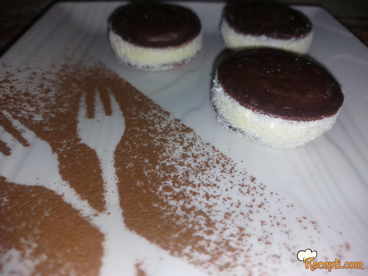 Puding razmutiti sa malo mleka, šećera i vanilin šećera. Ostalo mleko ostaviti da provri. Kada provri zakuvati puding. Ohladiti. Omekšali margarin penasto umutiti sa šećerom u prahu. Dodati mu puding i sve lepo sjediniti mikserom. Na jedan jafa keks staviti malo fila otprilike 3 kašičice. Da ne bude baš tanko, a ni previše debelo. Čokoladni deo keksa treba da ide gore. Zatim poklopiti drugim keksom takodje čokolodani deo okrenut ka gore. Lepo sa strane zamazati filom i valjati u kokos. Postupak ponavljati dok ne potrošite materijal.