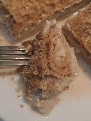Pomešati zagrejano mleko, slatku pavlaku i kašiku šećera, pa preliti preko palačinki. Ostaviti pola sata da upiju, pa posuti mlevenim orasima po želji (još dve kašike) i zapeći oko 25 minuta na 180 stepeni.