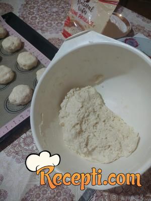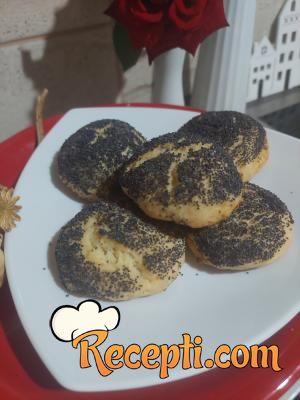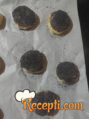 Testo ima masnu, ali i pufnastu strukturu. Ne treba razviti oklagijom nego samo rukama odvajati testo zeljene veličine. Jedna varijanta je da se pogačice odmah uvaljaju u mak, jer je testo dovoljno masno da se mak zalepi. Druga varijanta je mazanje razmućenim jajima i posipanje makom. Obe varijante su dobre. Veoma je ukusno, ako ne verujete probajte. Prijatno.