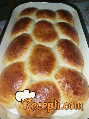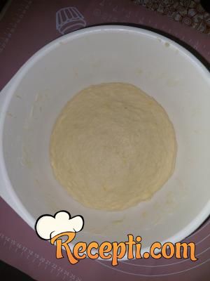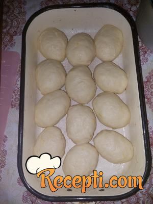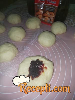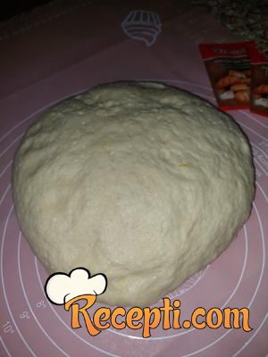 Suvi kvasac se dodaje direktno u brašno bez aktiviranja. Ja uvek malo odradim taj deo sa kvascem. Testo je dosta mekano. Takođe so uvek dodajem pred kraj mesenja kao i margarin, ulje ili mast zavisno šta se koristi. Ja sam ovaj put odstupala od recepta jer nisam imala margarin pa sam koristila mast. Rezultat isti samo masti treba malo manje od margarina. Pleh sam namazala mašću i posula šećerom. Tako da su se i od dole buhte lepo karamelizovale. Eto ukratko, prijatno