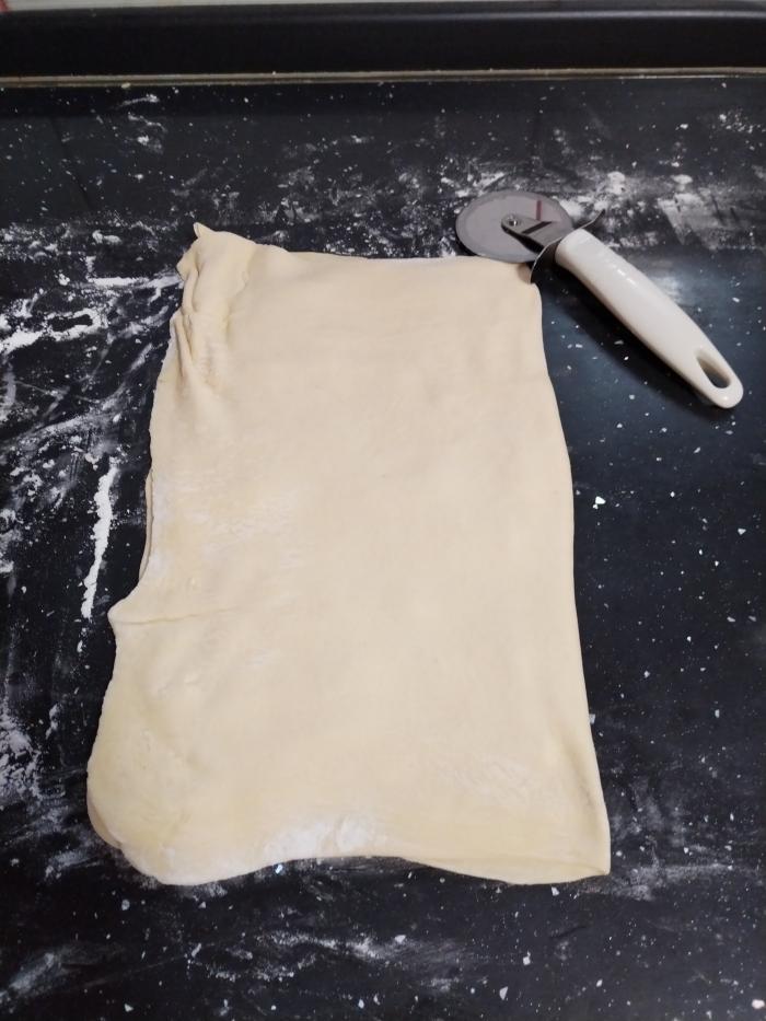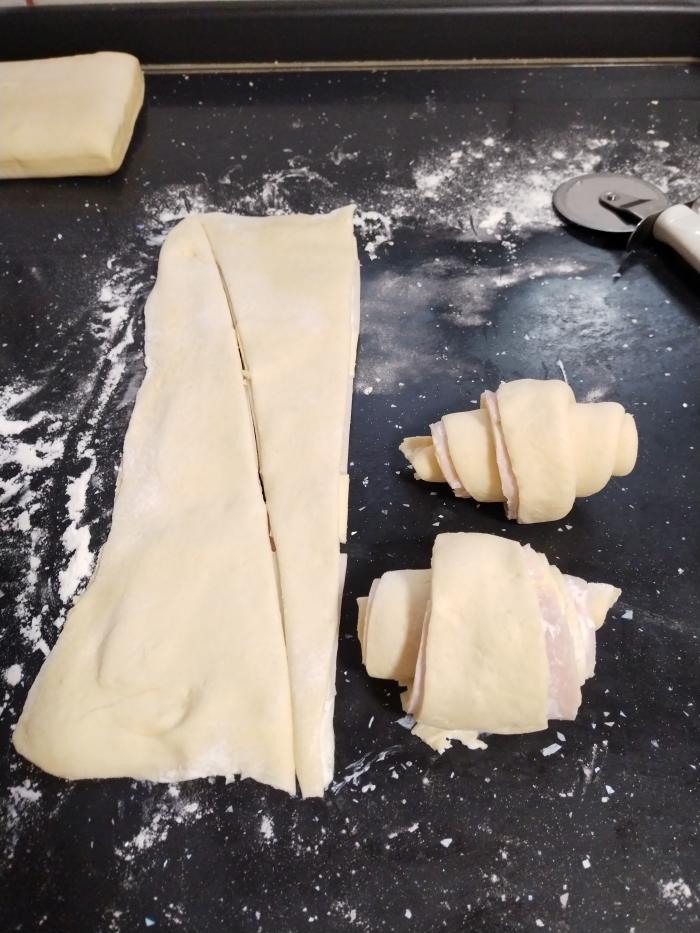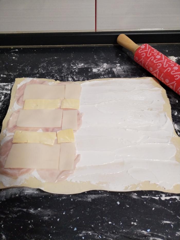 Isecit na trougliće, po dužini i svaki trougao urolajte u kiflicu.
