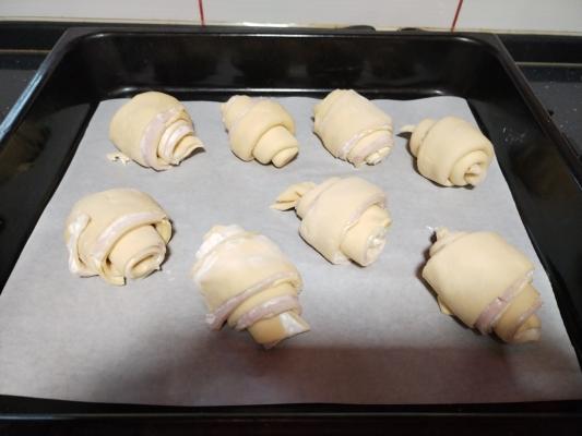 Kroasane ređajte u pleh obložen papirom za pečenje.