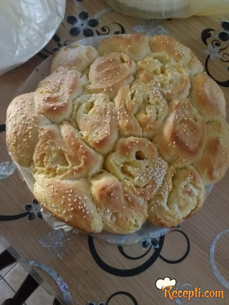 Premazati sa malo mleka i posuti sa susamom. Peći na 200 stepeni oko 30 minuta. Prijatno!