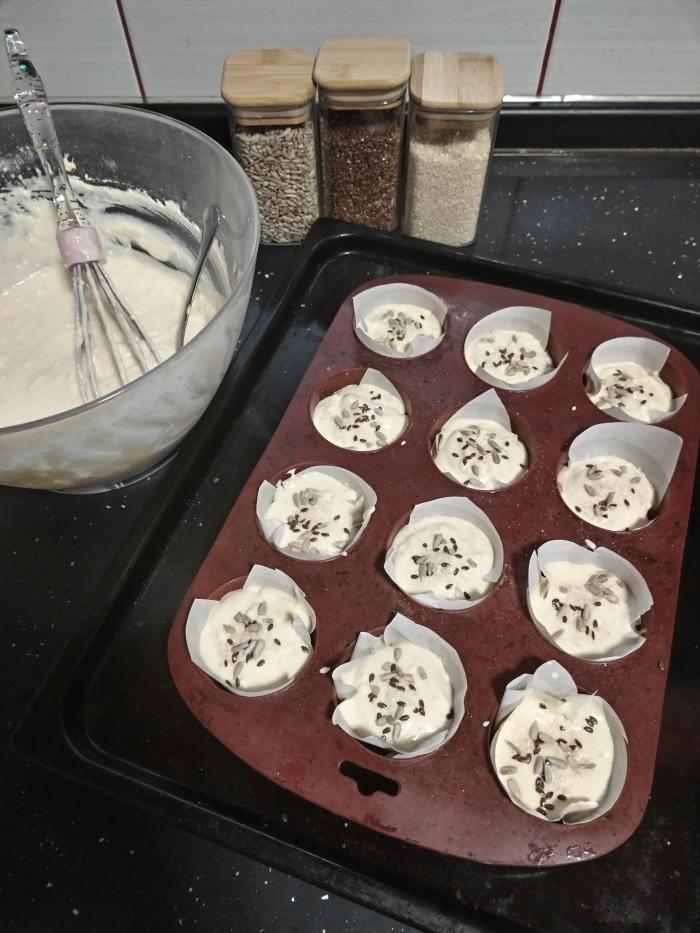 Mafine pospite semenkama po želji. Pecite u prethodno zagrejanoj rerni na 200 stepeni oko 25 minuta, dok ne dobiju zlatno-smeđu koricu.