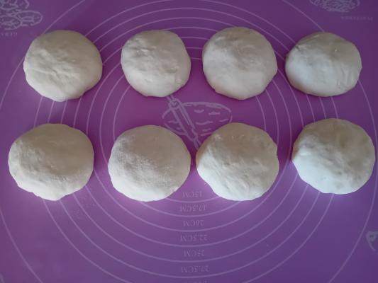 Nadošlo testo izručiti na pobrašnjenu radnu površinu i podeliti na 8 delova formirajuću jufke.