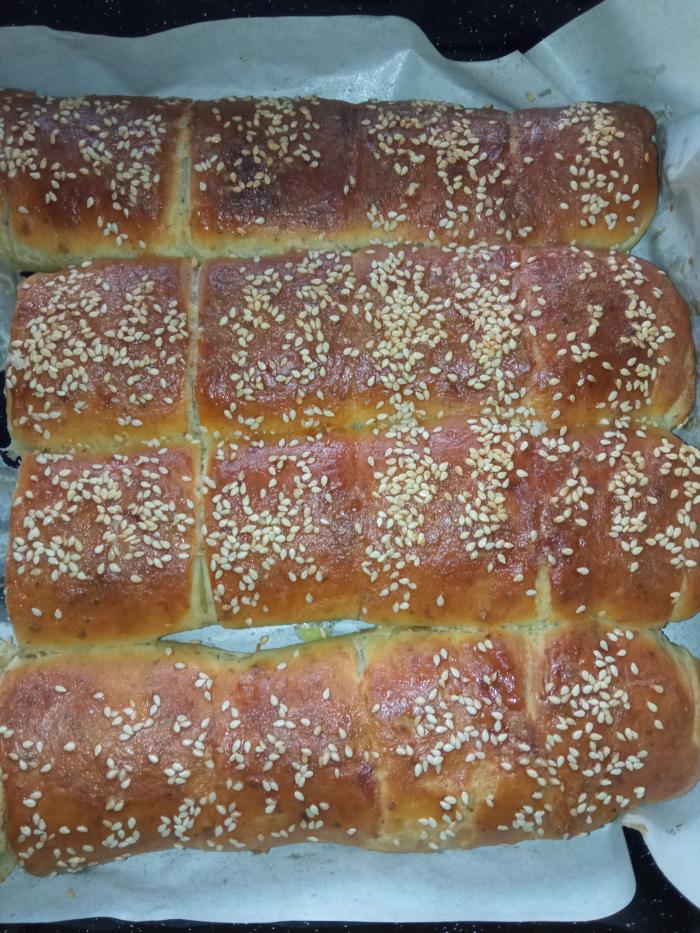 Premažite pecivo majonezom, zatim umućenim jajetom i pospite susamom.