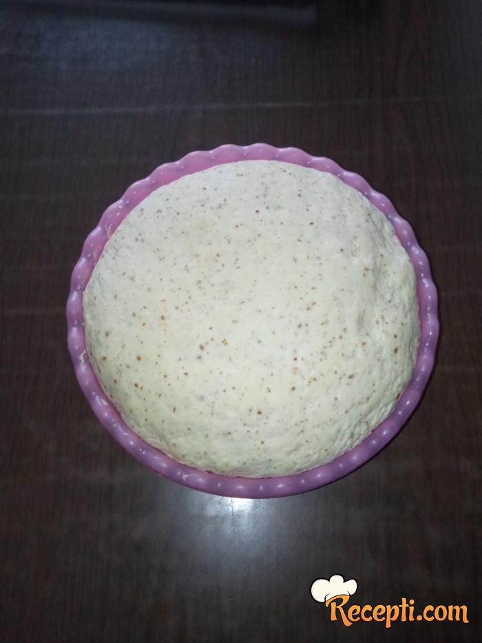 U činiji umutiti žumance, dodati pavlaku, izmešati. Sipati toplo mleko i rastopljen puter ili margarin. Posoliti i izmešati. Dodati nadošli kvasac. Dodati mleveni lan, postepeno dodavati brašno i umesiti mekano testo. Testo ostaviti da naraste.