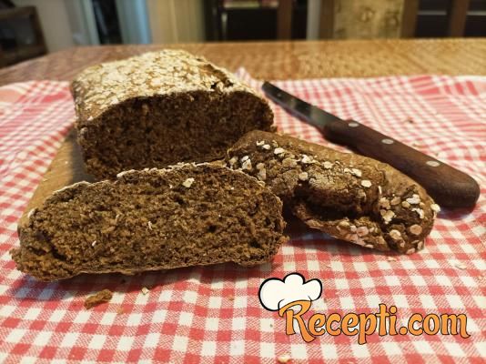 Kalup za hleb veličine 24x13x6 cm obložiti pek papirom i ostaviti na stranu. Izvaditi posudu sa testom iz frižidera i silikonskom špatulom ga prebaciti na blago pobrašnjenu podlogu. Špatulom ga "isprevrtati" da se dobije oblik vekne, prebaciti ga u kalup i posuti sa ovsenim pahuljicama. Tada uključiti rernu da se zagreje na 200 stepeni. Hleb pecite 50 minuta.