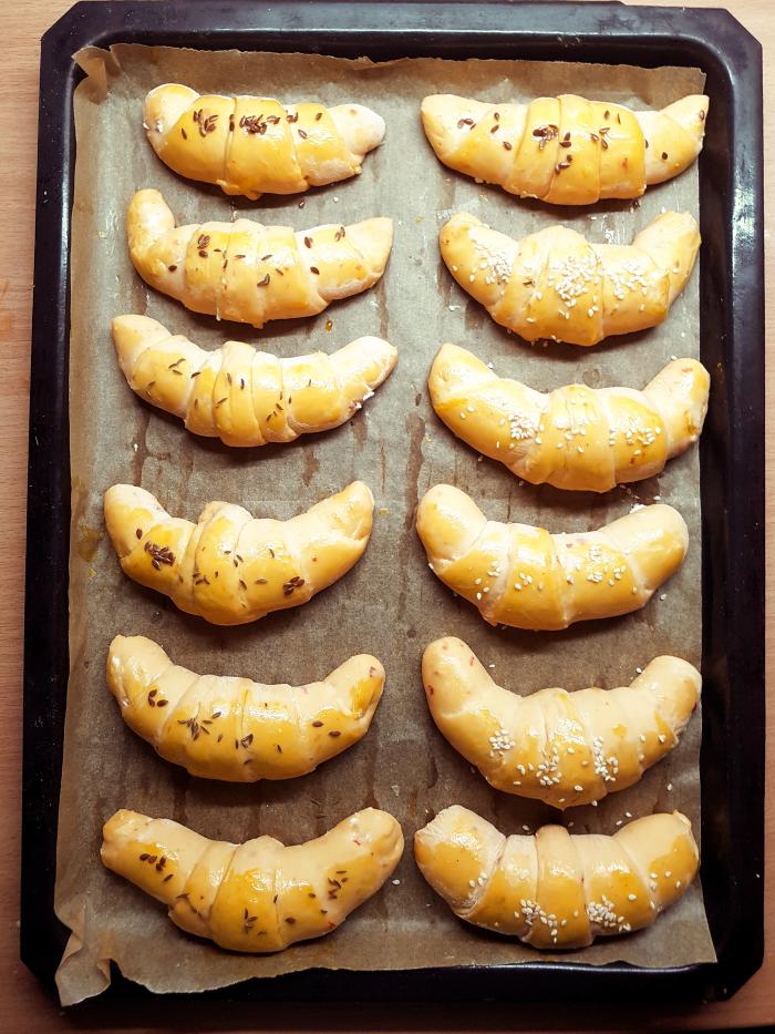 Ne znam da li ste nekada probali kifle sa ajvarom. Meni je ostalo pola tegle ajvara od barenih paprika, koji sam kupila (inače kući spremam ajvar od pečenih paprika, recept je ovde mnogo mi je ukusniji). Želela sam da ga iskoristim baš za ovakve kifle i verujte, oduševila sam se koliko su ukusne...