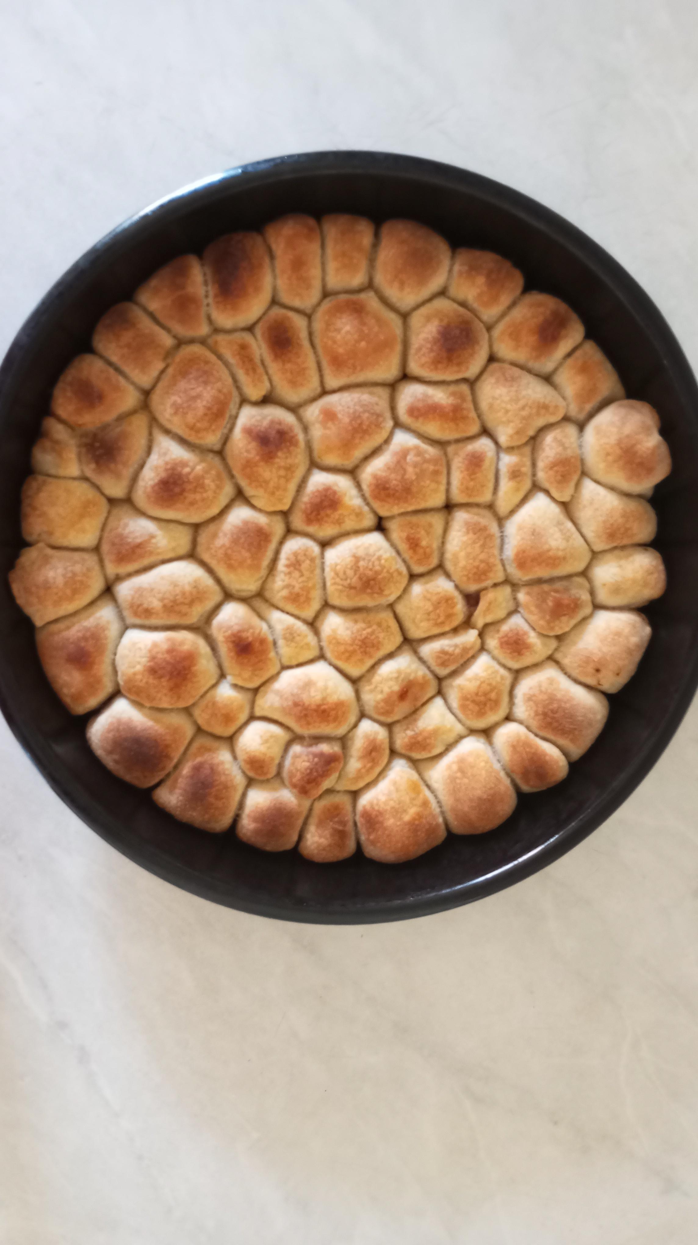 Testo podeliti na 10 delova formirajući jufkice. Prekriti ih providnom prianjajućom folijom i ostaviti da odstoje 10 minuta (dok pripremate nadev).