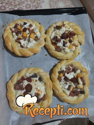 Pletenice sam pravila sa ostatkom šunke i jaja od Uskrsa. Naravno ne mora se čekati da ponovo budu praznici. Puniti ih možete po želji, šunkarica, salama, kobasica, kuvano jaje, feta, sir, masline... kombinacija ima raznih svako po svom ukusu nek bira. Prijatno.