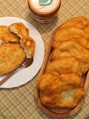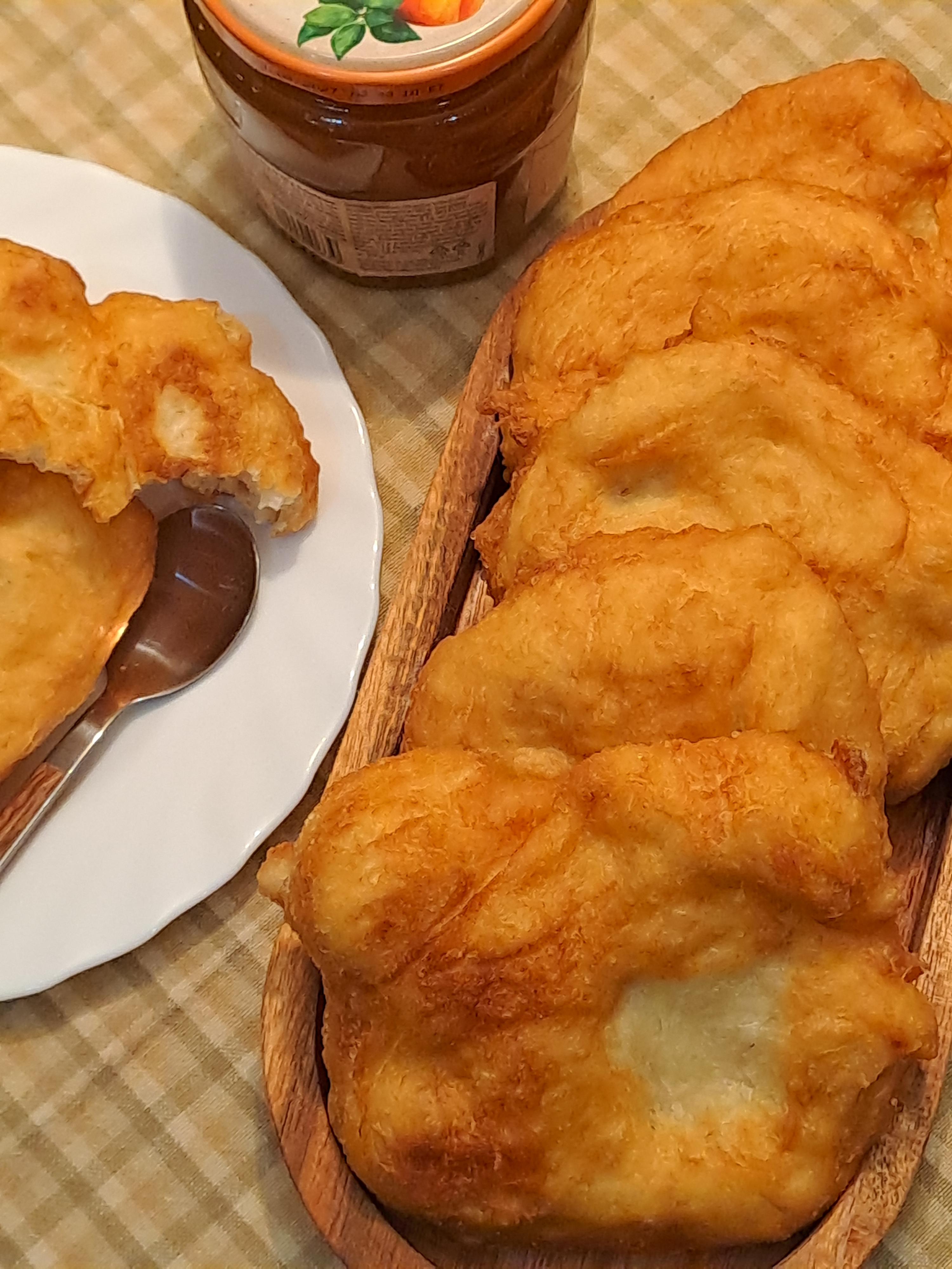 Testo premesiti špatulom još jednom, pa ponovo ostaviti da opet naraste. U manju šerpicu sipati ulje oko 2 cm visine i zagrejati na srednjoj temperaturi. Nauljenim rukama uzimati testo, malo ga rastanjiti i pržiti u zagrejanom ulju.