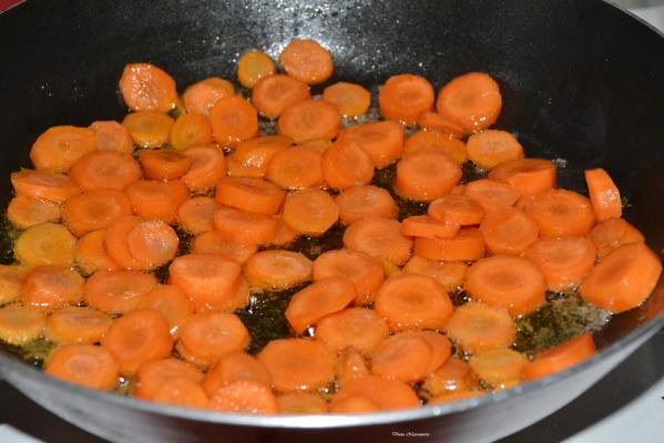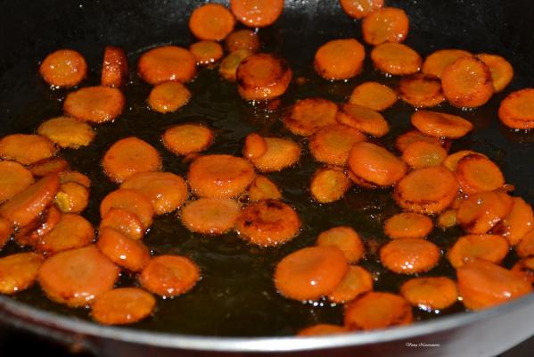 Danas sam bila puna ideja i bez pomoći interneta. Karameliziranu šargarepu je pripremao moj suprug, a ja sam bila veran posmatrač. On ju je stvarno predivno spremao, nekoliko puta sam pokušavala i konačno sam dobila onakvu šargarepu koja je najbliža njogovoj. Ovako pripremljena šargarepa izuzetan je prilog uz varivo od spanaća, a i uz mnoga druga jela.