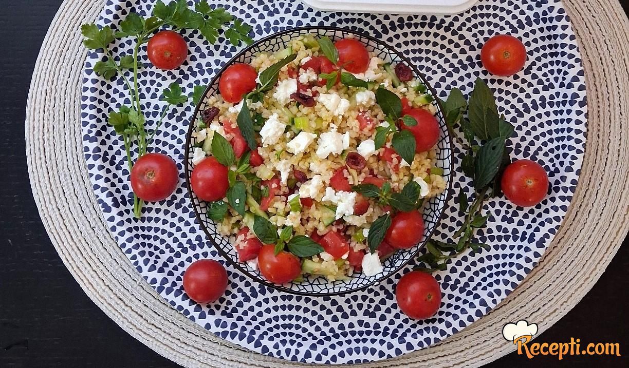 Iseckati paradajz, krastavac, štap celera, peršun i nanu. Sve sastojke pomešati i dadati skuvani bulgur. Posoliti i pobiberiti po ukusu.
