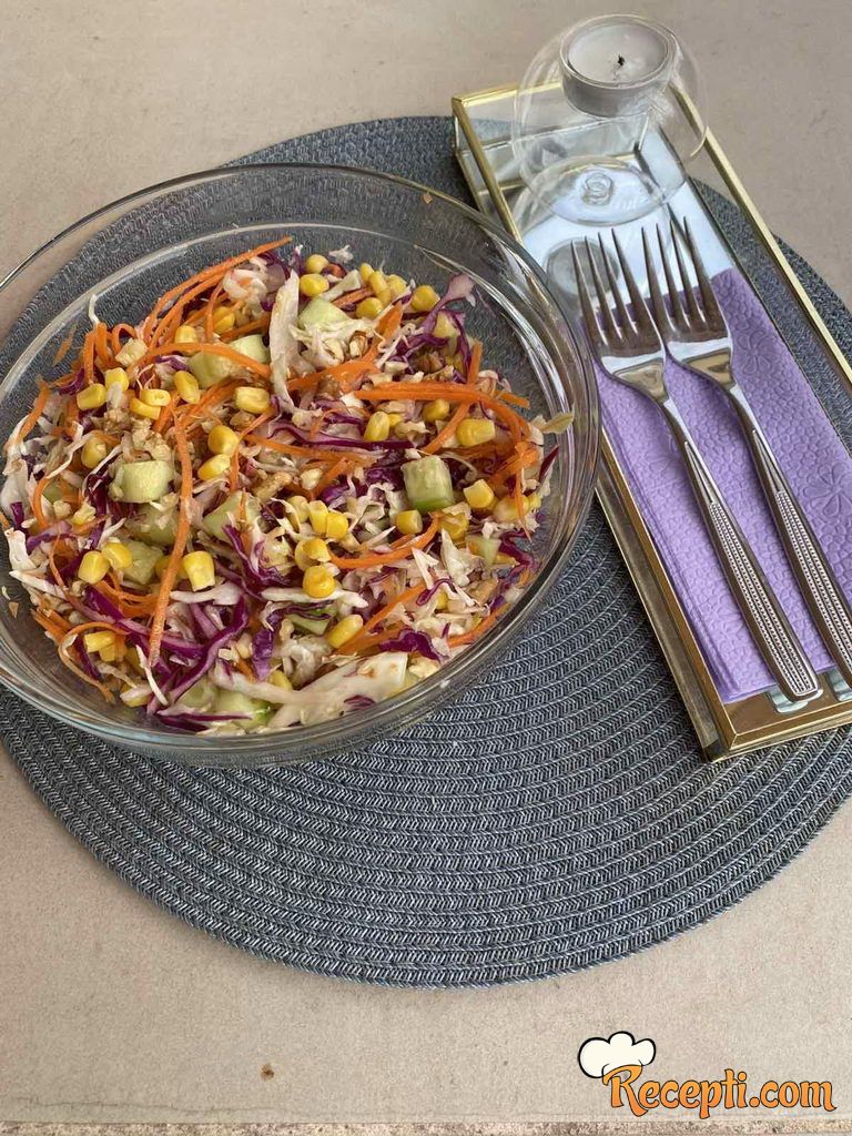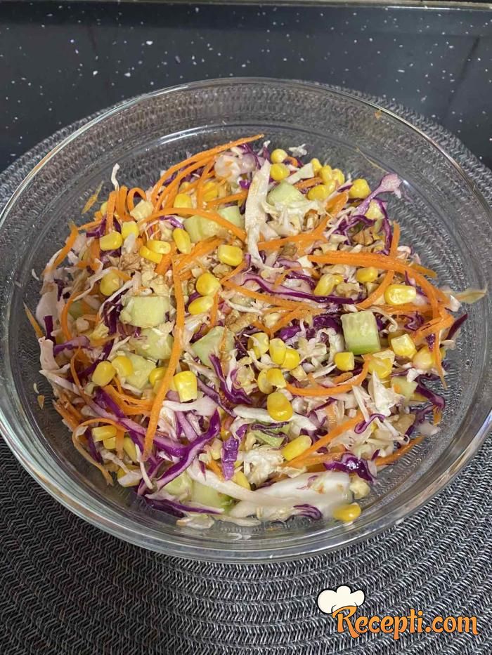Pospite sitno seckanim orasima. Posolite, pouljite, dodajte sirće i 1 kašičicu šećera pomešano sa malo vode i sve dobro promešajte pa poslužite.