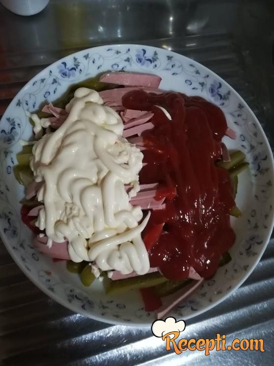 Salatu dobro promešati da se sastojci ravnomerno rasporede.
