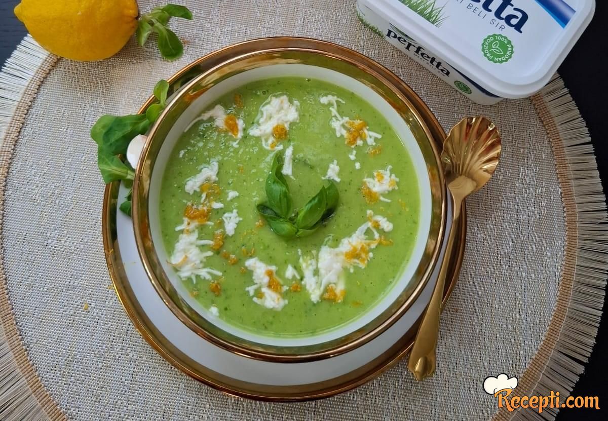 Skloniti sa ringle i izblendati potaž, ili mutiti štapnim mikserom, dok ne postane kremast. Servirati u dubljim tanjirima i preko izmrviti feta sir i narendati koricu limuna.