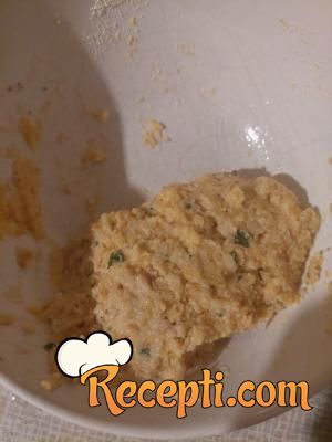 Meso sitno seckati. Dodati jaje, so, kašiku rastopljene masti, sodu bikarbomu i pomešati. Po ukusu i sitno seckani peršun se može dodati. Smesi dodati griz. Odložiti da malo griz povuče vlagu.