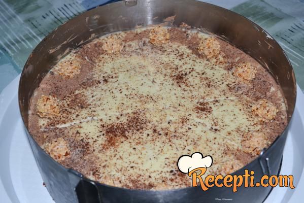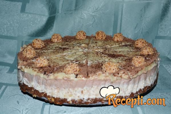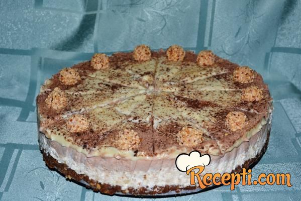 Recept sa interneta koji je pretrpio neke izmene i dobijen je savršen spoj maskarponea, Giotto kuglica, lešnika, bele čekolade i nutele.