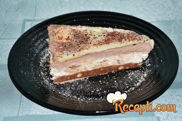 Ostavite tortu u kalupu, u frižideru preko noći da se stegne i narednog dana vrelim nožem prođite uz rub kalupa da se torta lakše oslobodi kada se kalup otvori. Ukrasite po želji.