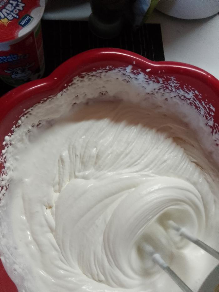 U drugoj posudi umutiti kiselu pavlaku sa 100 g šećera u prahu, pa dodati u umućenu slatku pavlaku, i sve izmešati sa kašikom.