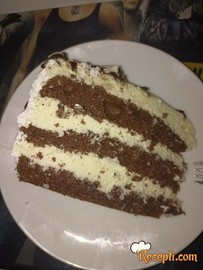 U drugu činijicu izmutimo još 100 ml slatke pavlake i namažemo sa strane lepo tortu okolo.